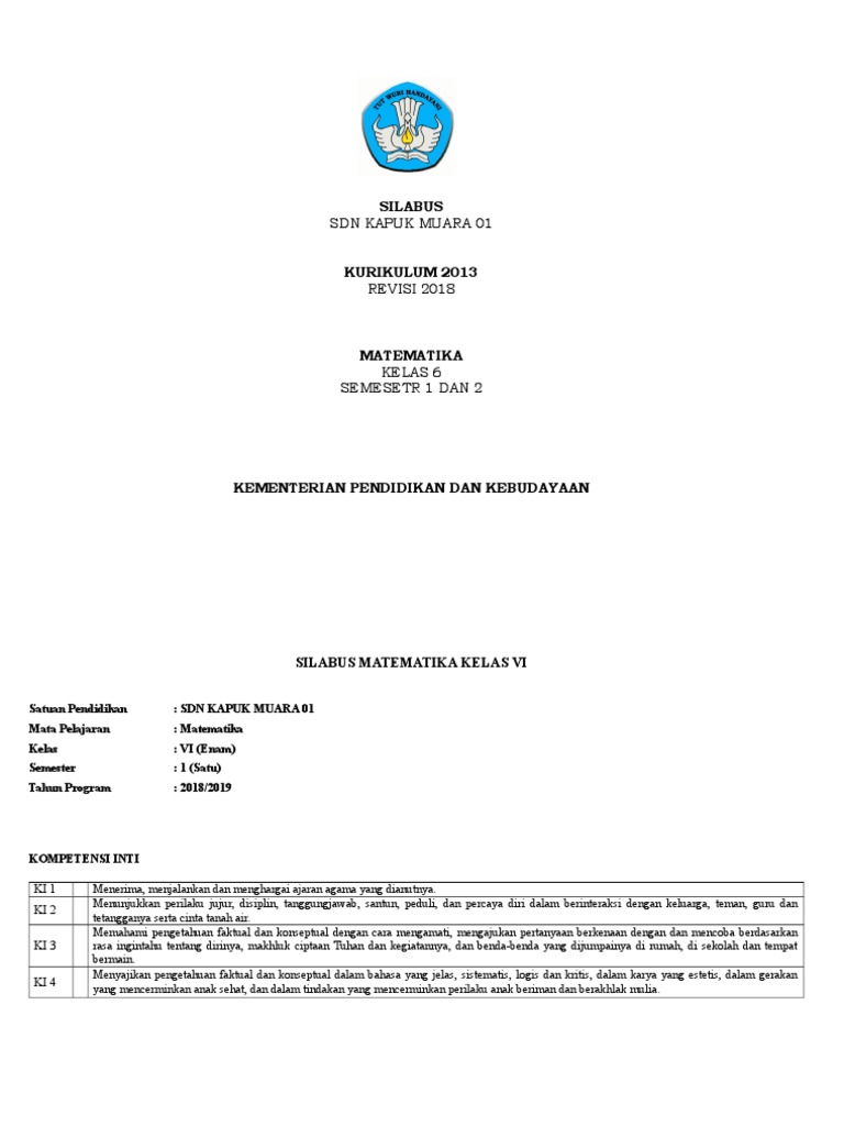 Silabus Matematika Kelas 6 - Download Rpp Matematika K13 Kelas 6 Semester 1 Revisi 2020 Satu Lembar Dicariguru Com - Maybe you would like to learn more about one of these?. Check spelling or type a new query. We did not find results for: Maybe you would like to learn more about one of these?